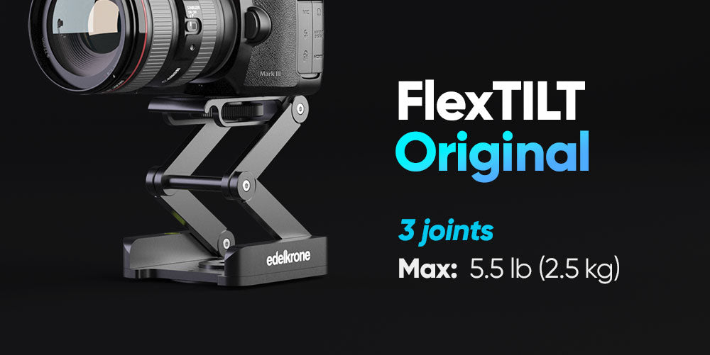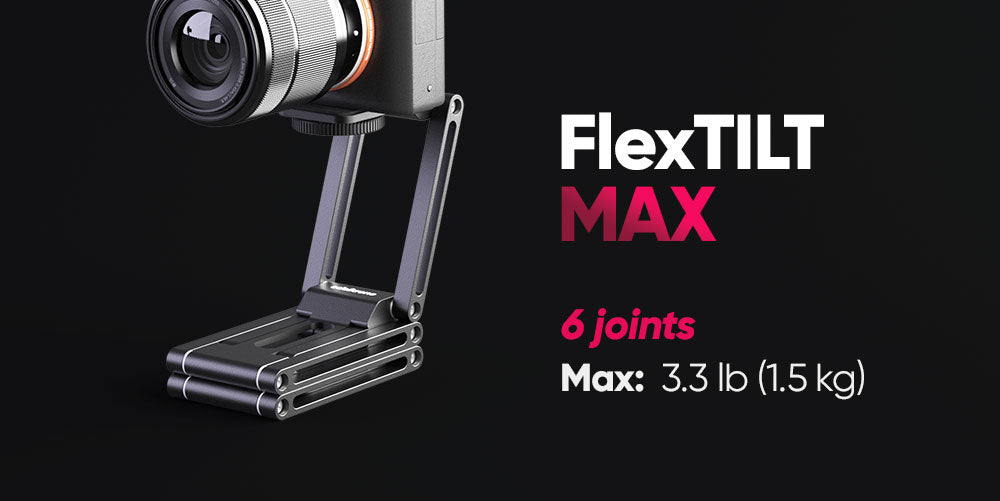 FlexTILT PRO comes with the same easy-to-use design that you know and love, giving you a variety of effortless, adjustable angles as you shoot. The added locks twist easily to secure your heavier cameras, lenses, and monitors in place.
