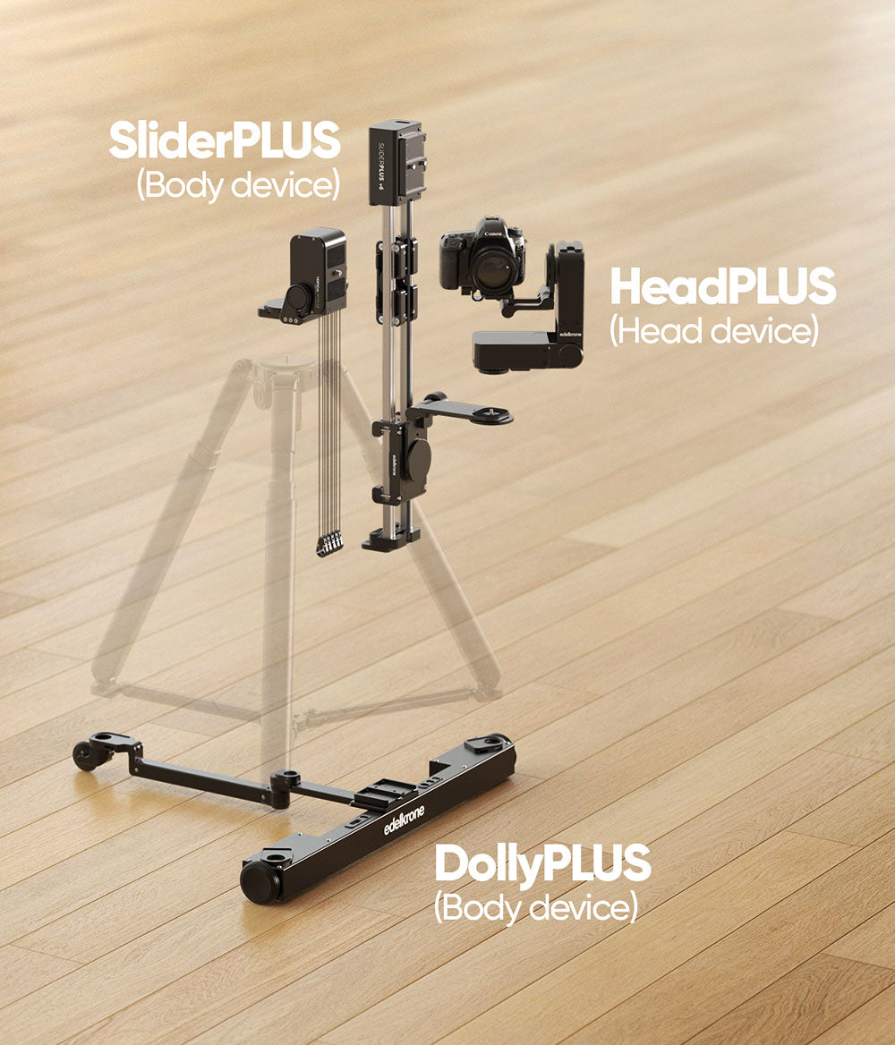 DollyPLUS follows straight or curved tracks across your space while SliderPLUS lifts or lowers your camera—creating multi-dimensional motion that adds cinematic depth to every shot.