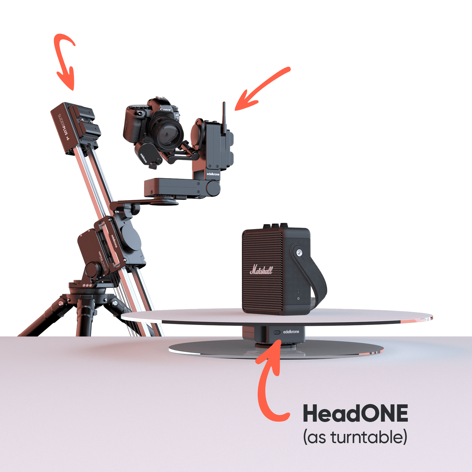 You can pair your HeadPLUS v3 with any version of HeadONE to rotate your products, and with SliderPLUS v6 to slide your camera — all devices will wirelessly communicate and perform in harmony to deliver the amazing shots you’re crafting.